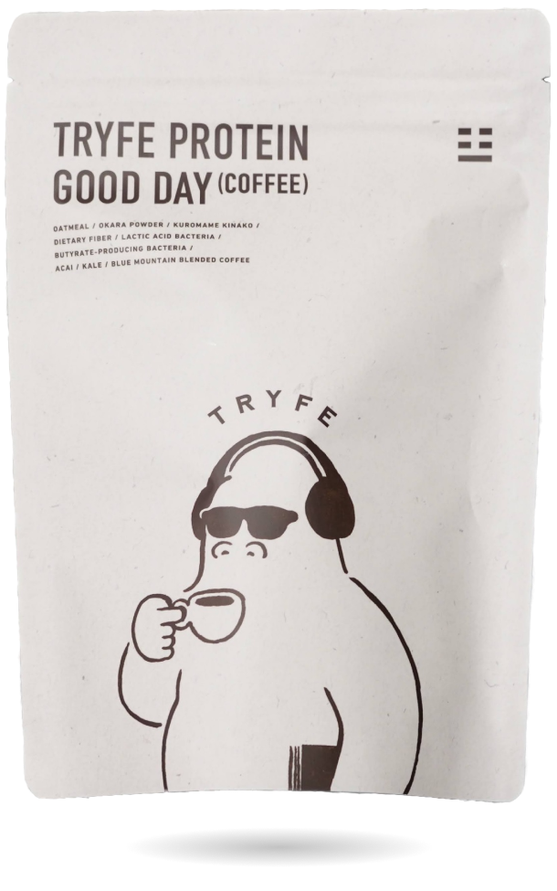 高タンパク質摂取によって腸内の善玉菌が減ってしまうことをご存知でしょうか?腸内環境が乱れると便通だけではなく、免疫力や運動パフォーマンスにも影響すると言われ、その関係性には近年大変注目が集まっています。腸内環境を整えるためには、発酵性食物繊維や善玉菌を摂り入れることが大切です。TRYFE PROTEIN GOOD DAYは発酵性食物繊維に加え、プロバイオティクスを配合。しっかりとタンパク質を摂りながらも食物繊維とプロバイオティクスにより、身体を内側から整えます。※腸内細菌の1つである酪酸菌を配合。